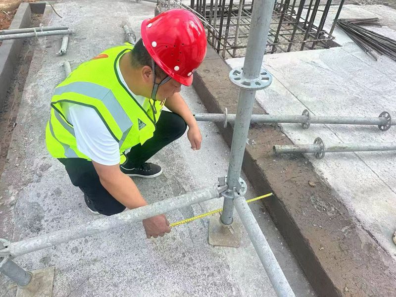 为确保劳动竞赛目标顺利达成,顺安公司生产调度科与各项目部紧密联动、科学统筹。优化施工组织设计,根据项目实际进展和难点,动态调整施工计划;高效调配资源力量,集中优势兵力攻坚关键环节,确保人、材、机高效运转。同时,将安全红线贯穿竞赛始终,严格落实各项安全防护措施,为竞赛高质高效推进筑牢安全根基。竞赛现场,顺安公司架业团队充分发扬“特别能吃苦、特别能战斗”的优良传统。现场管理人员以身作则、靠前指挥,全程驻守一线,严格监督指导每一道作业流程,对脚手架搭建工艺进行精益求精的把控,确保每一平方米的搭设质量都符合高标准要求。安全弦时刻紧绷,管理人员化身“安全卫士”,对现场进行隐患排查,不放过任何细微之处。